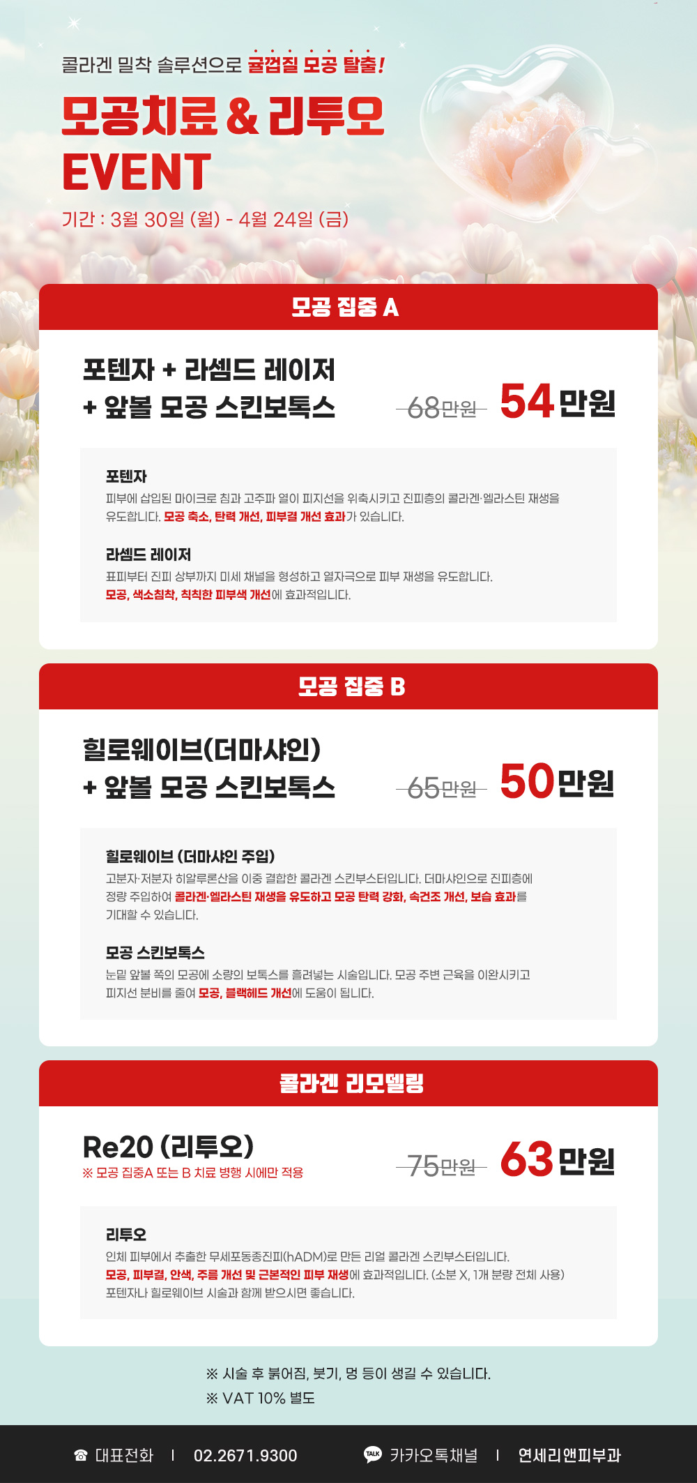 ◈ 모공치료 + Re20(리투오) EVENT ◈ 기간 : 3월 30일(월) ~ 4월 24일(금)